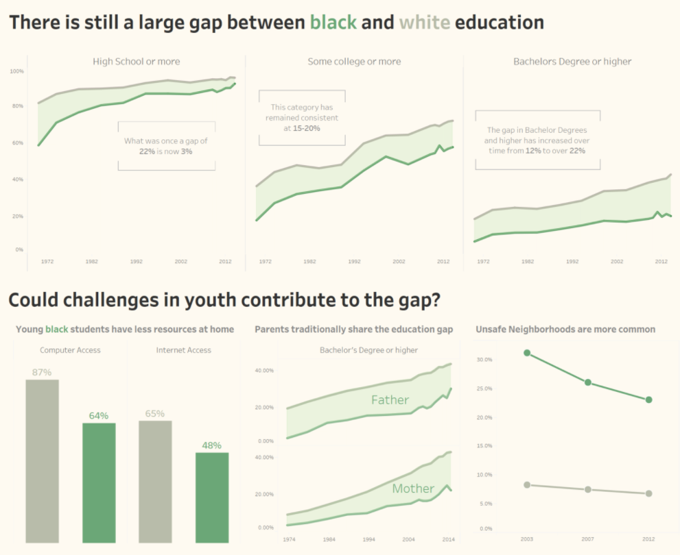 Asides from that, a few provided simple bar charts to compare the target variable against others in different aspects. For example, a comparison of proportion between blacks and other minority groups in having various education certificates.