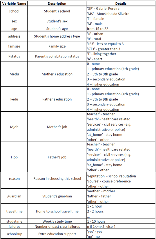 The data set used in this report is from Kaggle, which contains two csv files, student-mat.csv and student-por.csv. The data was obtained from a survey of Portuguese students aged 15 to 22 from mathematics and Portuguese language course. The data was obtained through a survey on family demographics, lifestyle factors, along with their grades in mathematics and Portuguese language. The data set contains other variables that can be broadly classified into family demographics and lifestyle factors.
