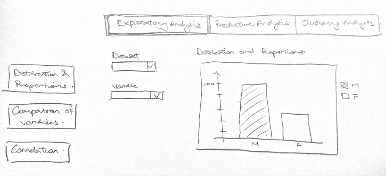The final storyboard is proposed to look like this, with selection tabs for the user to select which analysis he or she wants from the top, and will be able to select the more specific analysis for reviewing.